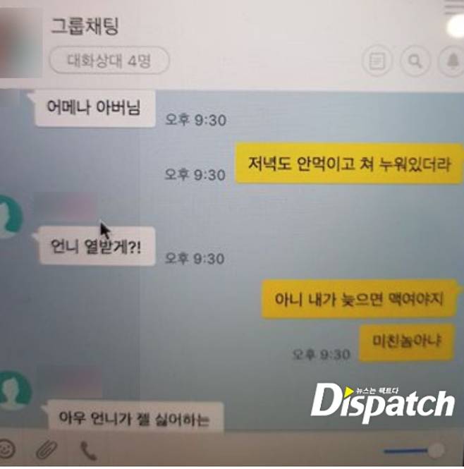 그리고 이 3,000만 원은 둘의 부부싸움에서 자주 등장한다. 다음은, '디스패치'가 입수한 카톡(재구성)이다.