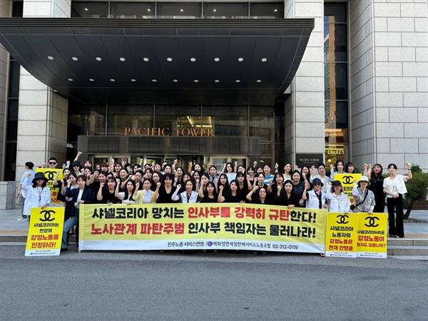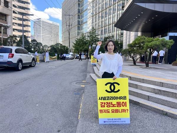 | ▲ 2024년 8월 30일 샤넬코리아 본사 앞에서 감정노동 인정을 요구하는 조합원들. |
