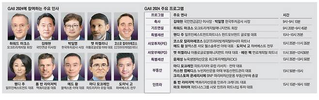 기조연설자로는 오크트리캐피털매니지먼트 창업자인 하워드 마크스 회장이 나서 경기 둔화 속 대체투자 기회에 대해 이야기할 예정이다. 마크스 회장은 월가의 전설적 투자자로, 전 세계 투자자들이 그의 투자 철학과 원칙을 중요한 지표로 삼곤 한다. 미국 등 주요국의 정치적 불확실성 속 차별화된 투자 전략에 관심이 쏠린다.