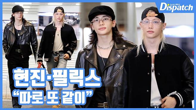 이날 현진과 필릭스는 서로 다른 매력을 나타낸 스타일리시한 공항패션을 선보이며 안경으로 포인트를 줬다.