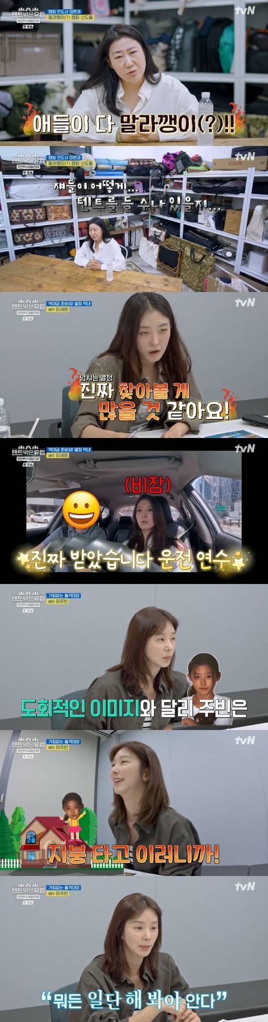 라미란은 "눈뜨고 뭐 먹고 정리하면 끝났던 거 같다. 이번 시즌에는 먹을 것도 좀 줄이고 라이트 하게. 요즘 SNS에 계속 다이어트 식단 레시피 보고 있다. 멤버들 간의 호흡은 걱정이 안 되는데 애들이 다 말라깽이더라. 쟤들이 어떻게 텐트를 들 수나 있을지. 벌써부터 그게 걱정이 돼서 힘센 아이들이 왔으면 좋겠다"라며 털어놨다.