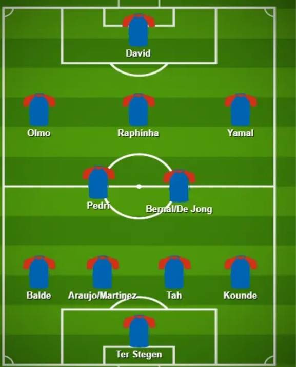 매체는 바르셀로나의 타깃인 데이비드와 요나탄 타가 내년 여름 FA로 바르셀로나에 합류할 경우 탄생할 새로운 베스트 11을 예상했다. 이때 4-2-3-1 전형에서 데이비드가 최전방에 배치됐고, 좌우 측면 윙어 자리에 다니 올모와 라민 야말이 이름을 올렸다.