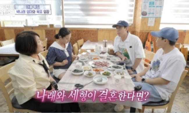 특히 박나래의 어머니는 "인연은 가까운 데서 찾는 것"이라며 "세형 씨는 워낙 가족같이 느껴지지만, 사위해도 괜찮다"고 폭탄 발언을 했다.다. 양세형 동생인 양세찬 역시 "애도 낳고"라며 "만약 둘이 결혼한다면 대한민국 거의 탑이다. 예능계의 원빈, 이나영급이다. 장동건, 고소영 급으로 대한민국이 들썩거릴 것"이라고 호응해 웃음을 자아냈다.