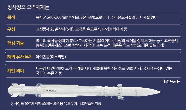 북한 장사정포를 저지하는 역할은 장사정포요격체계(LAMD)의 몫이다. 국방과학연구소(ADD)가 LIG넥스원·한화시스템 등과 함께 2029년까지 개발할 예정이다.