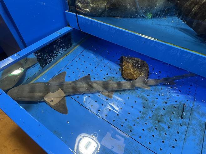 | ▲ 바다에 방류된 까치상어 환경운동연합은 지난 7월 까치상어 6마리를 바다에 돌려보냈다 |