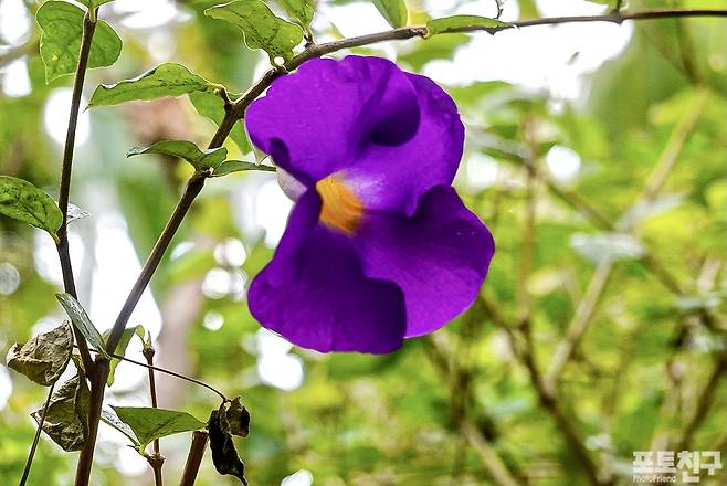 연분홍 부겐빌레아와 바람개비를 닮은 플루메리아, 색감이 고운 툰베르기아도 눈길을 끕니다.