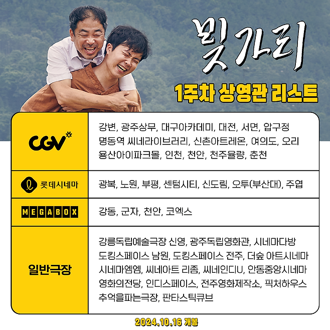 영화는 전국의 독립예술영화 전용상영관 뿐 아니라 CGV, 롯데시네마, 메가박스 3사의 멀티플렉스에서도 개봉되어 전국 42개관에서 상영 중입니다.