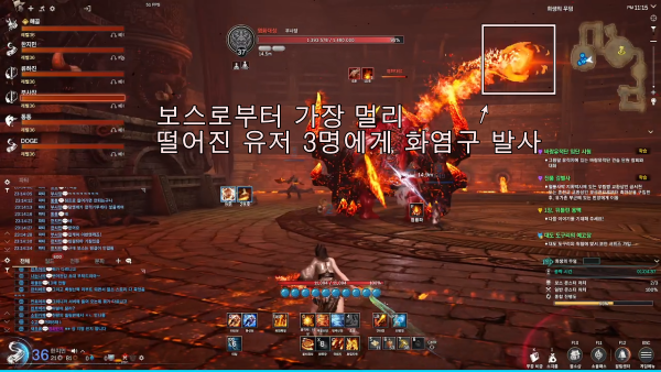 ② 화염구 : 점프 이후 가장 멀리 떨어진 플레이어 3명에게 화염구 1회씩 발사(외곽 유도)