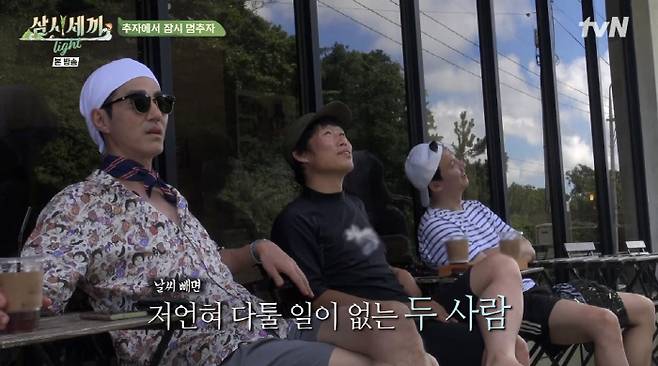 점심 메뉴는 짜장면에 탕수육이었다. 이후 세 사람은 커피까지 마시며 휴식을 취한 뒤 집으로 향했다. 이때 유해진은 "더운데 마룻바닥에 앉아 있으면 짜증만 나고"라고 하자, 차승원은 "자꾸 다툼과 분란이 일어니까 그게 싫다"고 했다. 이에 유해진은 "우리가 그런 관계가 아니다. 날씨 때문에 그런거다"고 했고, 차승원은 "전혀 아니다. 날씨 때문이다"고 해 웃음을 안겼다.