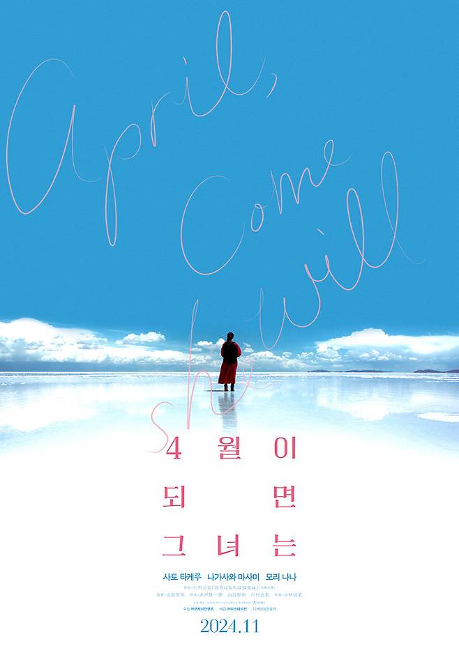 '4월이 되면 그녀는'은 10년에 걸친 사랑과 이별을 우유니, 프라하, 아이슬란드, 로케이션을 통해 장대한 스케일로 그려낸 영화로, 카와무라 겐키가 원작은 물론 각본에도 직접 참여하며 기대를 모으고 있다.
