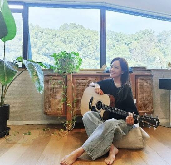 완연한 가을을 즐기는 소유진은 기타를 들고 바닥에 털썩 주저앉아 낭만을 즐기기도 했다.