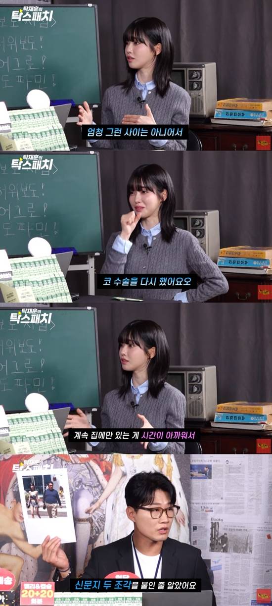 과즙세연은 "여행을 간 것"이라며 "예전에 '노빠꾸탁재훈' 나갔을 때 댓글에 코가 왜 이렇게 뾰족하냐는 말이 있어서 코 수술을 다시 했다. 그때랑 코가 다르다"고 솔직하게 이야기했다. 그는 "실밥을 풀고 나니 계속 집에만 있는 게 아까워서 여행을 갔던 거다"라고 덧붙였다.