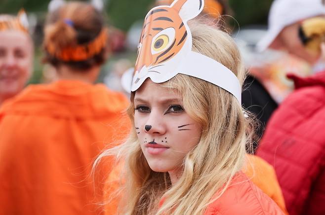 [호랑이 분장을 한 여성 (타스=연합뉴스 자료사진)]