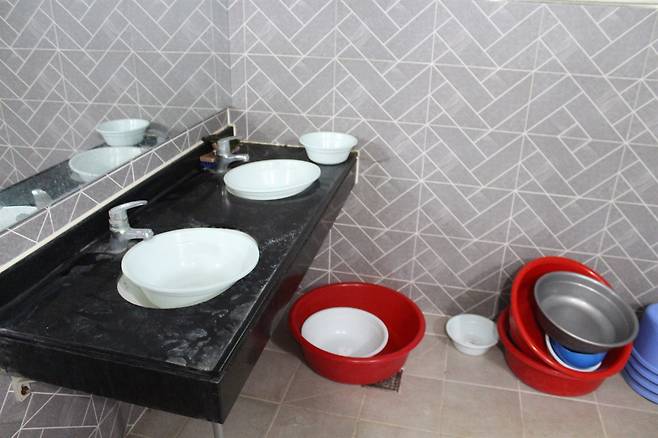 | ▲ 보은군 탄부면 사직리 작은목욕탕 내부 보은군 탄부면 사직리 작은목욕탕 내부에 주민들이 사용하는 양동이가 놓여 있다 |