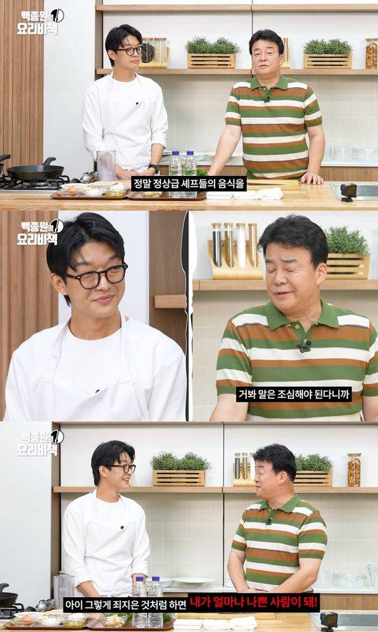 이에 백종원은 "그렇게 죄지은 것처럼 하면 내가 얼마나 나쁜 사람이 되냐. 원래대로 당당하게 해라. 원래는 되게 당당하게 한다. 말도 잘하고"라며 감쌌다.