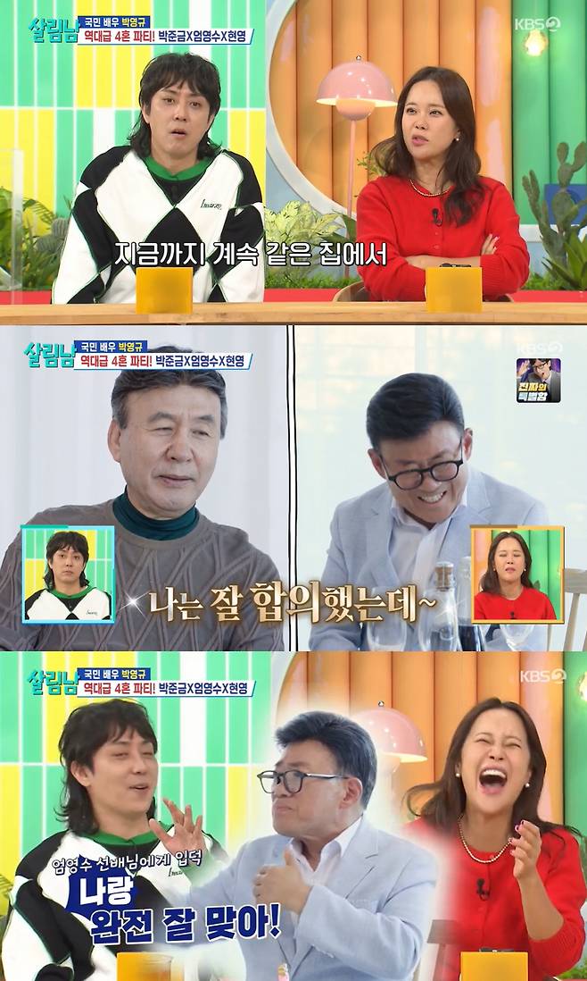 박영규는 "아내 회사가 건설 시행 회사의 총괄실장이었다. 지인 소개로 분양 소개소에서 만났는데 인연이 됐다. 무조건 오피스텔을 계약했다. 그 사람 때문에 오피스텔을 샀다"라 고백했다.
