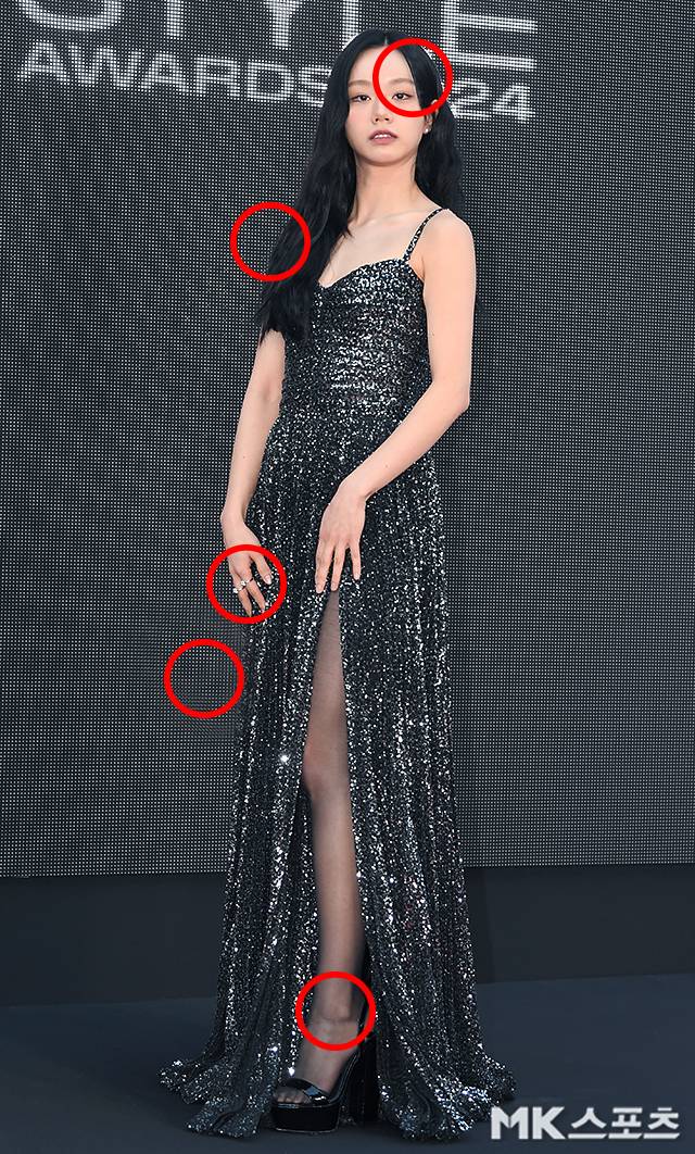 이날 한쪽에 깊게 들어간 슬릿 디테일의 드레스를 입은 혜리는 그녀의 길고 날씬한 다리 라인을 완벽하게 강조해 보는 이의 시선을 사로잡았습니다.