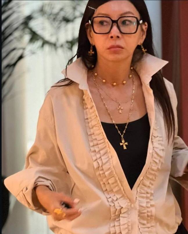 공개된 사진 속 황신혜는 화려한 프릴 디테일이 돋보이는 화이트 셔츠에 오버사이즈 팬츠를 매치해 유니크하면서도 트렌디한 스타일을 완성했다. 프릴 장식은 여성스러운 분위기를 더해주었고, 넉넉한 실루엣의 팬츠는 편안함과 스타일을 동시에 연출했다.