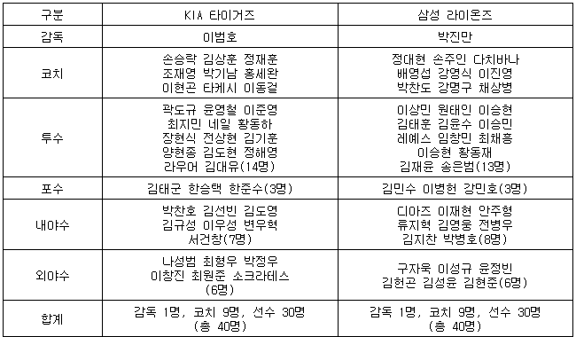 정규시즌 우승팀 KIA는 주축 선수 전원을 엔트리에 포함했다.