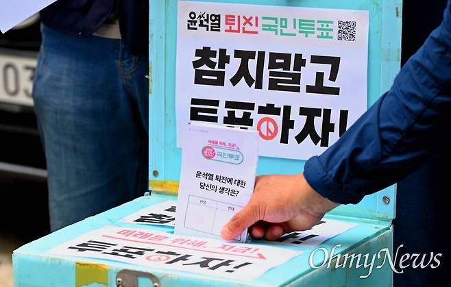 또 민주노총 경남본부는 "고쳐 쓸 수 없는 정권, 참지 말고 참여하자"라는 구호를 내걸고 10~11월 사이 '윤석열 퇴진 국민투표'를 진행하고 있다.