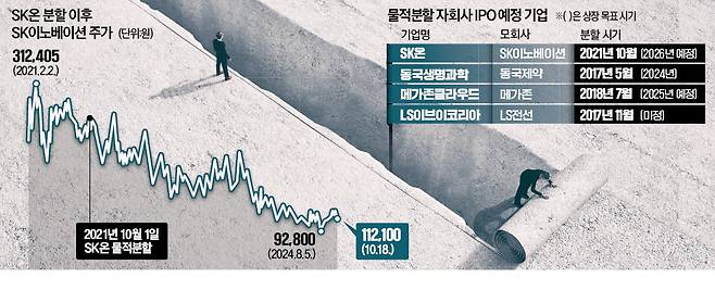 지난 17일 국회 정무위원회 금융감독원 국정감사에서 SK이노베이션은 과거 물적분할 이슈로 질타받았다. 2019년 배터리 분리막 제조사 SKIET에 이어 2021년 배터리 전문기업 SK온을 물적분할한 이후 주가가 급락했다.