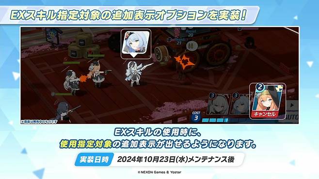 EX 스킬 대상 지정이 개선된다. 스킬 효과를 받는 학생의 머리 위에 초상화가 출력된다. 이로 인해 원하는 대상에게 정확히 버프를 주는 게 가능해졌다. 간혹 학생이 뭉쳐있는 경우 실수로 다른 학생에게 주던 상황이 해소될 전망이다.
