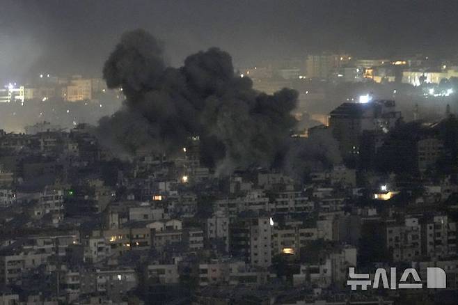 [다히예=AP/뉴시스] 20일(현지시각) 레바논 베이루트 남부 교외 다히예에서 이스라엘의 공습으로 연기가 치솟고 있다. 레바논 보건부는 이스라엘과 헤즈볼라의 전투가 시작된 이후 이스라엘 공습으로 레바논 사망자가 2464명, 부상자는 1만1530명에 이른다고 발표했다. 2024.10.21.