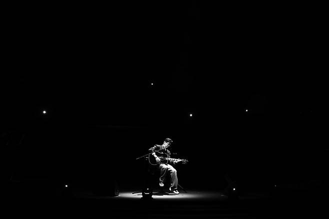 공연은 지난 1995년 이적이 데뷔 이후 지금까지 선보였던 곡의 가사가 스크린 속에서 원형을 이루어 교차되며 시작됐다. 깊이 있는 가사로 이뤄진, ‘이적의 노래들’을 상징하는 원형들은 복잡한 도심 속과 파도가 넘실대는 바다 등 여러 장소 속에서 유영하다 곧 하나로 합쳐지며 관객들을 무대로 이끌었다. 고요한 푸른 바다 아래 헤엄치는 고래의 모습과 어두스름하게 깔린 잔잔한 조명 속, ‘Whale Song’을 부르며 이적이 등장해 오프닝을 열었다. 단단한 중저음과 어우러진 가사는 관객을 오롯이 무대에 집중케 했다. 담백한 보이스로 높은 몰입도를 선사하며 관객을 숨죽이게 한 그는 ‘반대편’과 ‘빨래’를 이어 열창했다.