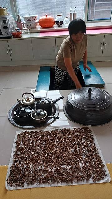 비가 억수같이 쏟아지는 가운데도 일행을 따뜻하게 맞이해준 부부가 사과를 꺼내오며 집안 살림살이 현장을 구경시켜 줬다. 방에 들어가니 아예 부엌이 방 안에 설치되어 있었다. 겨울이면 너무나 춥기 때문에, 거기서 밥도 지을 뿐만 아니라 난방도 겸하고 있다고 한다.