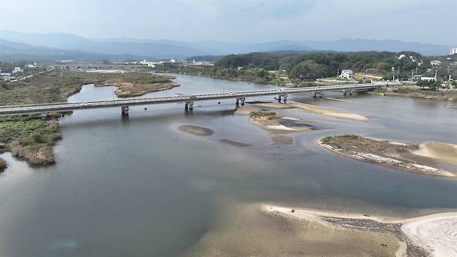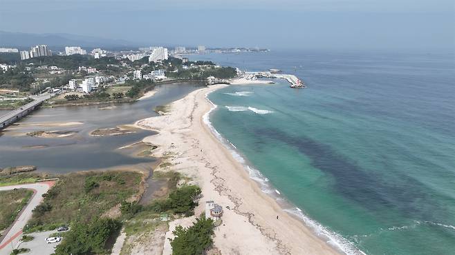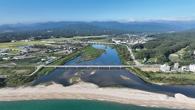 | ▲ 가로막혀있는 물길, 바다와 연곡천을 따라 모래톱이 형성되어 있다 |