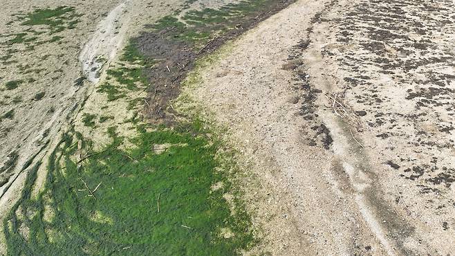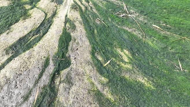 | ▲ 각종 오염물질이 모래톱 위에 말라가고 있다 |