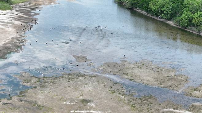 지난 18일 방문한 하천변에서 갈매기는 바다를 바라보고 한가로이 노닐고 가마우지는 강가에서 먹이를 찾아 두리번거렸다. 겉으로는 평화로워 보이지만 조금 더 들어가 보면 불안함으로 가득 차 있다. 물줄기를 따라 오가는 바다생물과 민물고기들은 설 자리를 내주고 멀리 달아났다. 하천 물속은 썩어가 악취가 코끝을 찔렀다.