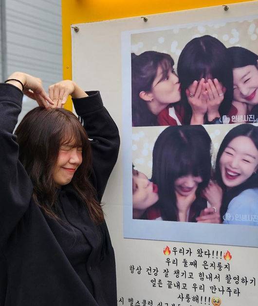 21일, 그룹 에이핑크의 멤버이자 배우 정은지가 드라마 '술꾼 도시 여자들'로 인연을 맺은 한선화와 이선빈에게 커피차를 받으며 행복해했다.