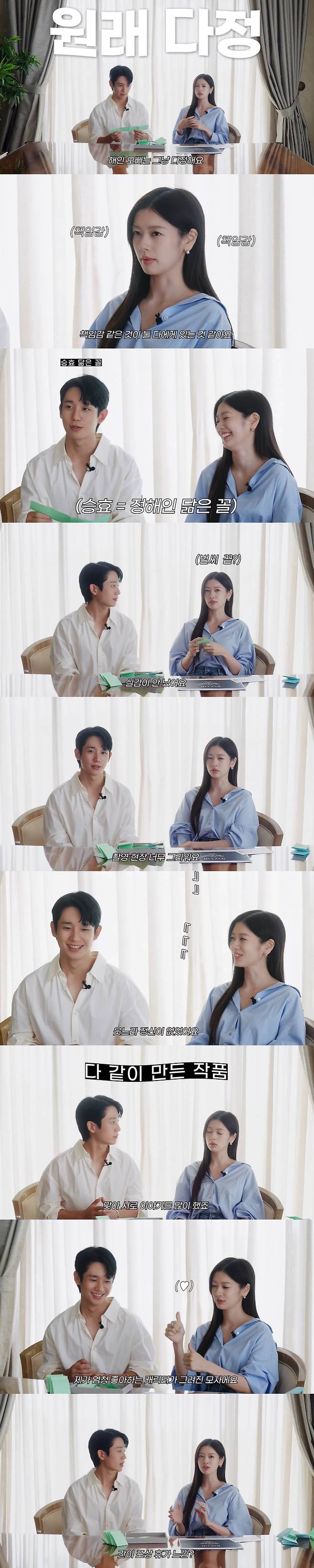 정해인과 정소민은 드라마 '엄마친구아들'에서 각각 최승효 역과 배석류 역을 맡아 리얼한 커플 연기를 펼치며 수차례 열애설에 휘말렸다. 이번 영상에서도 그런 두 사람의 달달한 순간은 이어졌다.