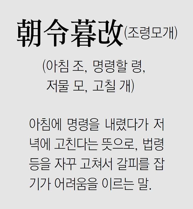 [신문과 놀자!/풀어쓰는 한자성어]朝令暮改(조령모개)(아침 조, 명령할 령, 저물 모, 고칠 개)