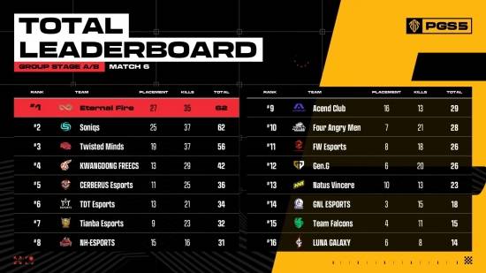 (엑스포츠뉴스 이정범 기자) 이터널 파이어(EF)가 'PGS 5' 그룹 스테이지 1일 차 1위에 올랐다.