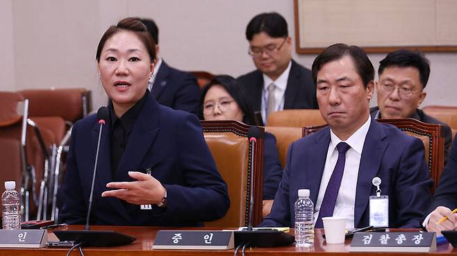 ▲ 의원 질의에 답변하는 강혜경 씨