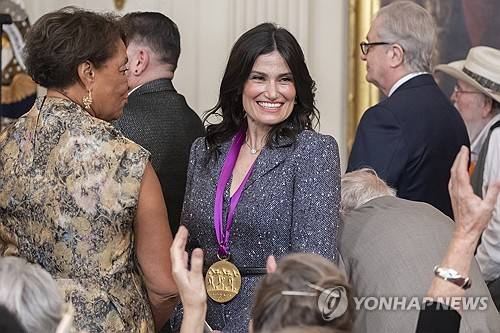 Singer and actor Idina Menzel stands during a National Arts and Humanities Reception in the East Room at the White House in Washington, Monday, Oct. 21, 2024. (AP Photo/Mark Schiefelbein)