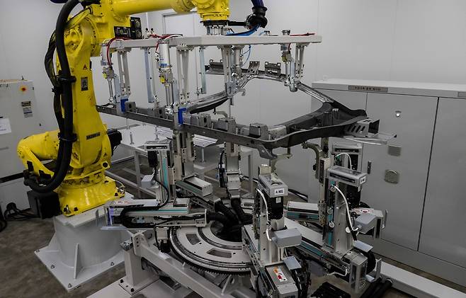 지난 21일 현대자동차그룹 의왕연구소. 현대차·기아는 이날 연구소에서 '이포레스트 테크데이' 개막을 앞두고 국내 언론에 200여개 이상의 차세대 제조 기술을 공개했다. 협력사들을 중심으로 소개할 전시 공간이라는 게 회사 측 설명이지만 곳곳에서 분주하게 움직이는 로봇팔과 공작기계의 움직임에 전시 공간이라기보단 공장을 통째로 뜯어다 옮긴 수준에 가까웠다.