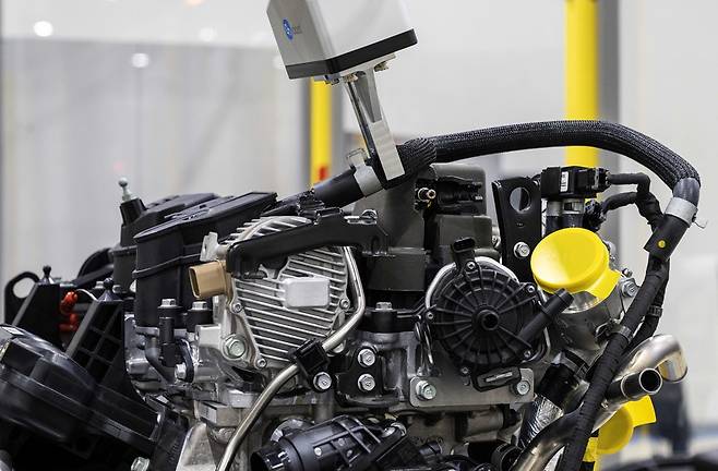 ‘비정형 부품 조립 자동화 기술’은 AI 비전 알고리즘을 통해 호스류, 와이어류 등 형태가 고정되지 않은 비정형 부품도 인식하고 피킹 포인트를 자동으로 산출해 제어 명령을 내리는 프로그램이다. 세 개의 손가락을 갖고 있는 로봇은 엔진 등 복잡한 부품 조립도 세밀하게 수행하고 있었다. 작업자 대비 속도 자체는 느리지만 연구개발을 통해 효율을 더욱 높일 수 있다는 게 회사 측 설명이다.