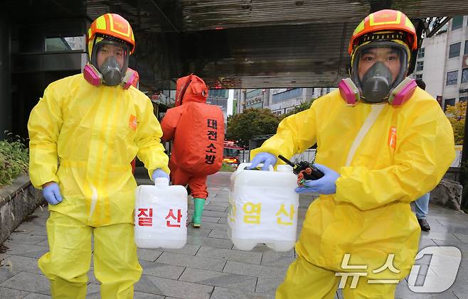 이번 훈련은 국방과학연구소에서 연구실험 중 폭발로 인한 화재 및 유해화학물질 유출 상황을 가정한 화재·구조분야 팀 단위 전술훈련으로 진행됐다.2024.10.22/뉴스1