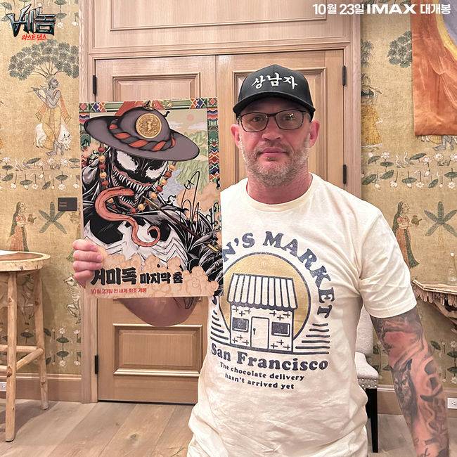 2015년 당시에 한국 매체와의 인터뷰를 통해 선물 받은 ‘상남자’ 모자를 직접 착용하고 SNS에 인증샷을 올려 화제를 모은 바 있는 톰 하디는 이번에 다시 한번 한글로 적힌 ‘상남자’ 모자를 착용한 인증샷을 공개해 눈길을 끈다. 여기에 한국의 미를 담은 '베놈: 라스트 댄스' 한글날 포스터를 든 모습과 함께 한국 관객들에게 감사한 마음을 전해와 한국 팬들에게 반가움을 더한다.