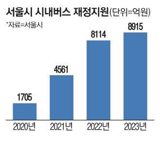 서울시 재정 지원도 2020년부터 지난해까지 최근 4년간 지속적으로 늘었다. 2020년 1705억원 규모였던 서울시 재정 지원은 지난해 8915억원까지 급증했다.