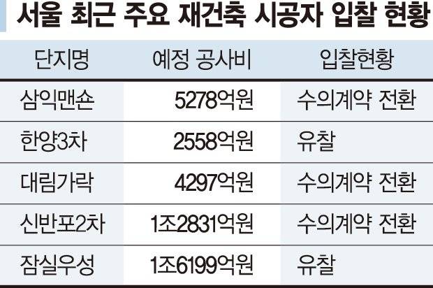 서울 재건축 '실종된 경쟁입찰'... 공사비 부담에 줄줄이 수의계약