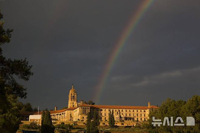 [프리토리아(남아공)=AP/뉴시스]2013년 12월12일 남아공 수도 프리토리아의 유니언 빌딩 위로 무지개가 떠 있다. 대만은 22일 남아공 주재 대표부를 수도 프리토리아에서 상업중심지 요하네스버그로 옮기라는 남아공의 요구를 거부했다. 이는 대만을 외교적으로 고립시키려는 최근 중국의 움직임에 맞서기 위한 것이다. 2024,10.22.