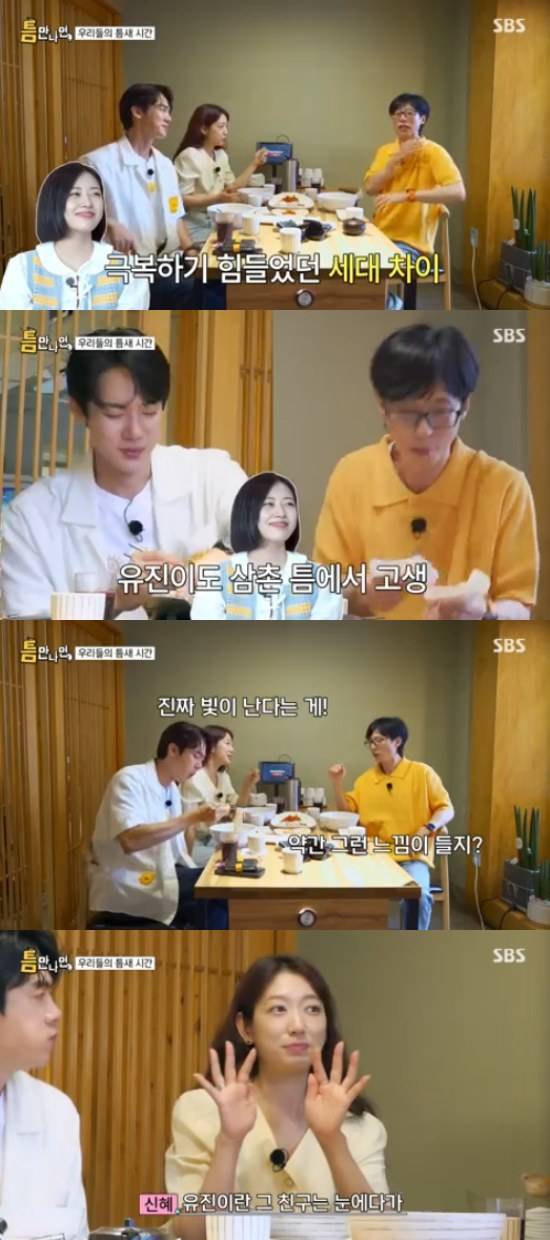 22일 방송된 SBS 예능 프로그램 '틈만나면'에서는 배우 박신혜가 '틈 친구'로 출연해 유재석, 유연석과 함께 '틈 주인'을 만나 이야기를 나눴다.