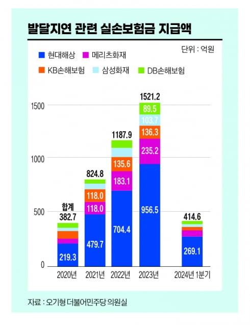 코로나19 확산 기간에 영유아 발달지연 문제가 심각해지면서 주요 손해보험사들이 지급한 관련 보험금 규모가 커지고 있다. 어린이보험 점유율 1위인 현대해상이 지급한 발달지연 관련 실손 지급액은 2020년 219억원에서 2023년 956억원으로 뛰었다.