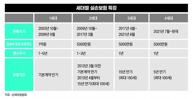 3·4세대 실손보험은 매년 인상된다. 4세대는 만기가 5년으로 짧아졌다.