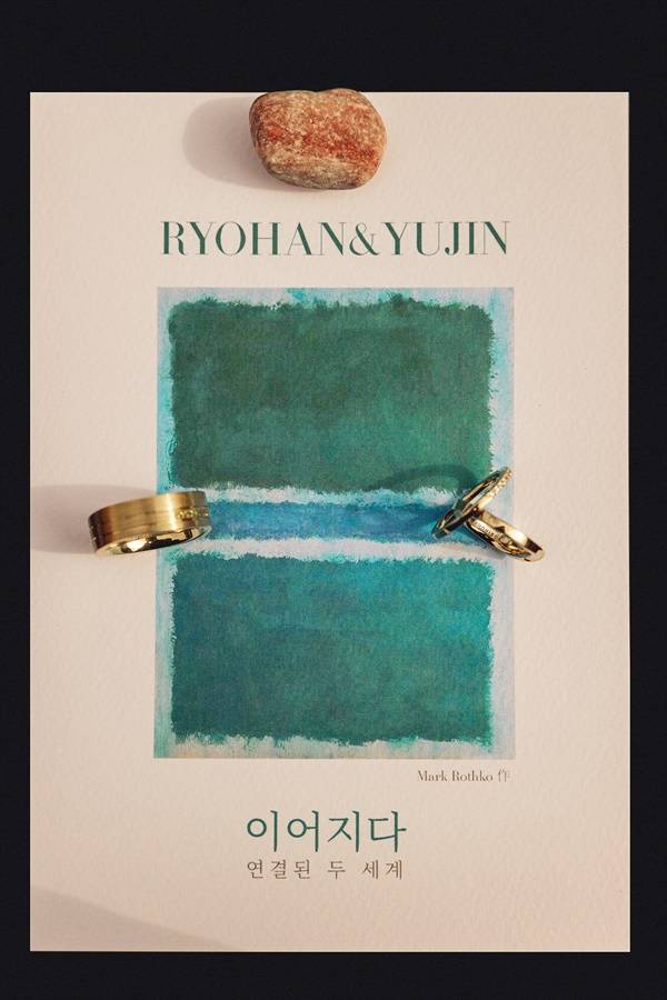 신랑은 신부와 함께 미술관이나 전시회를 찾아 영감을 얻는다. 신랑은 설치 미술을 좋아하고 신부는 그림에 관심이 많았다. 신랑은 초록색, 신부는 파란색을 좋아하는데 어느 날 미술관에서 추상화 작가 '마크로스코'의 작품 중 파랑과 초록이 섞인 그림을 보게 되었다. 파랑을 보며 물을, 초록을 보며 산을 떠올렸다. 파랑과 초록 사이의 직선은 다리를 떠올리게 했다.