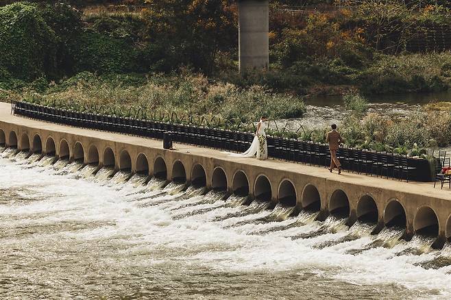 "다리는 서로 다른 두 세계를 연결하는 역할을 합니다. 신랑과 신부의 서로 다른 배경, 문화, 경험이 다리를 건너는 예식을 통해 하나로 통합된다는 의미를 담고 있습니다."